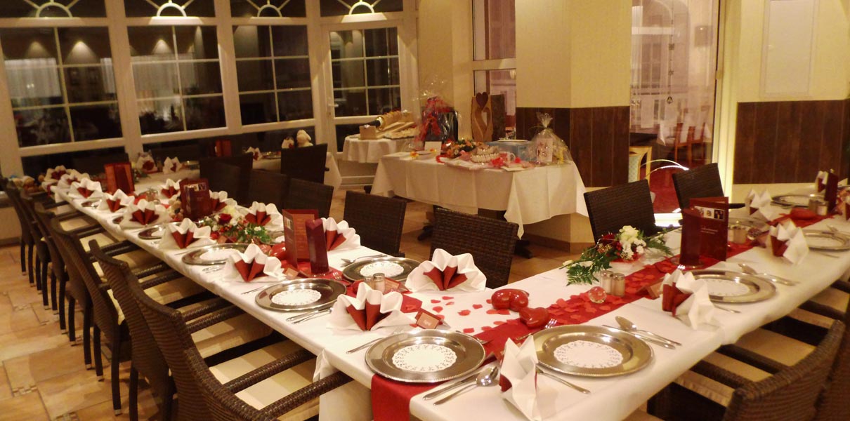 Gern richten wir diese bis zu 55 Personen aus. Unser lichtdurchfluteter Wintergarten bietet Ihnen eine gemütliche Atmosphäre mit Blick und Zugang zum Garten.